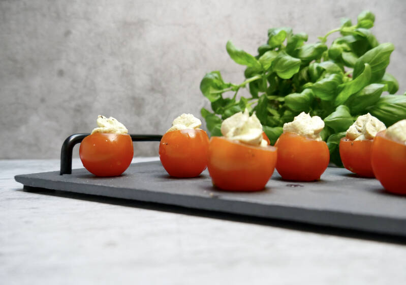 | 3. Vul de cherrytomaatjes met het pesto-roomkaasmengsel. |