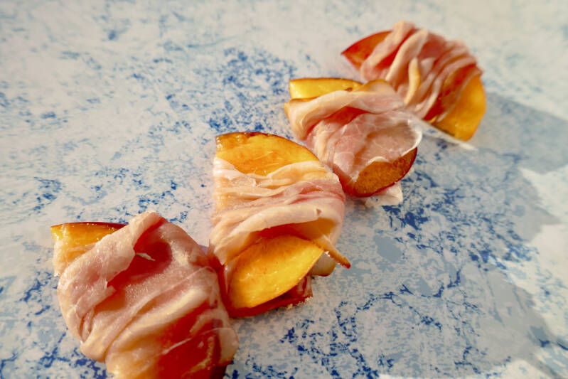 | 2. Rol de nectarine in de plakken rauwe ham. |
