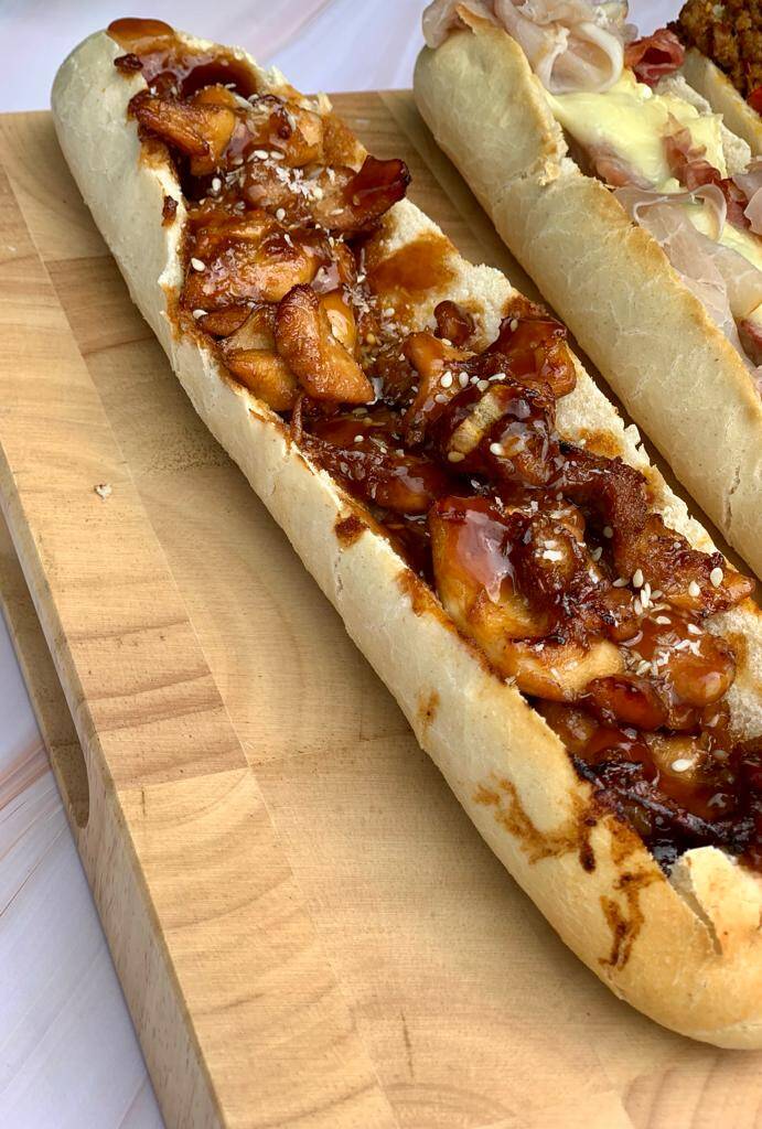 | 5. Vul het stokbrood met de kip en geraspte kaas. Bak het stokbrood in 15-20 minuten af in de oven. |