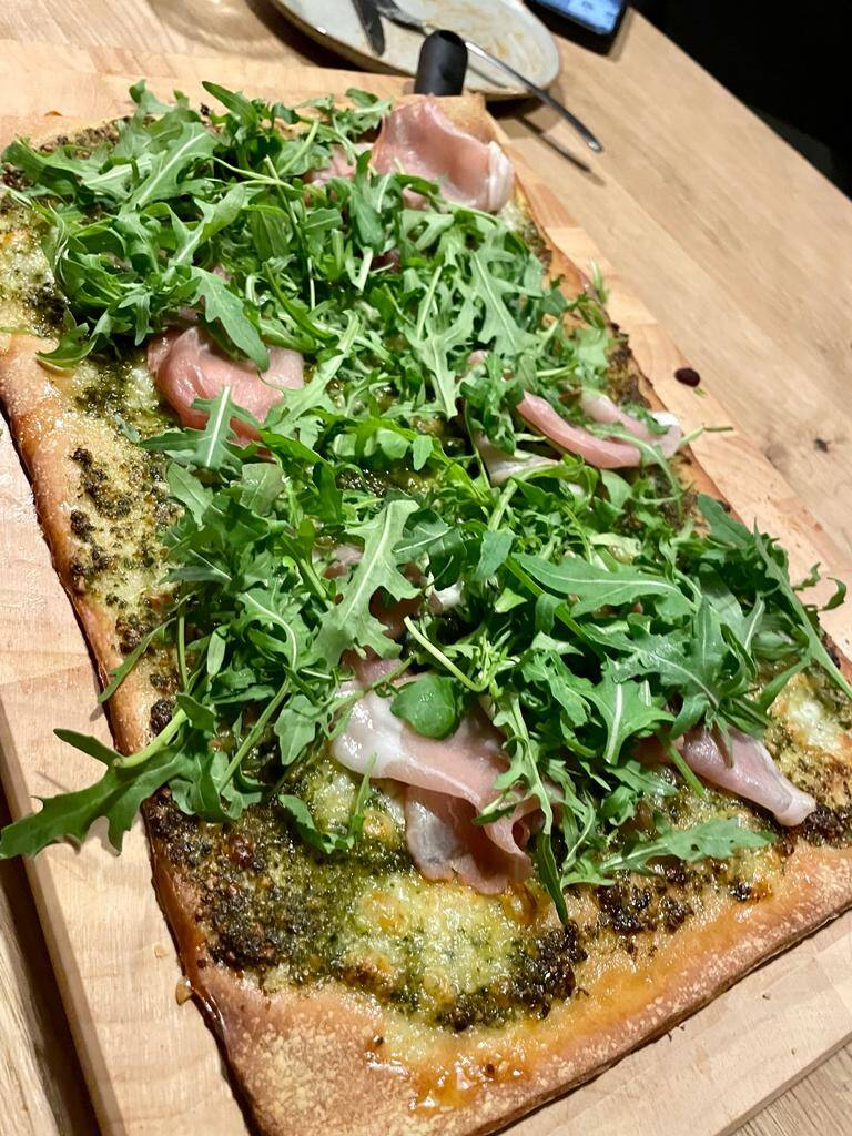 | 6. Maak de pizza af met de rauwe ham en rucola. |