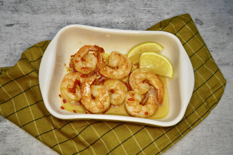 | 2. Marineer de garnalen in de olijfolie, knoflook en rode peper voor 30 minuten in de koelkast. | |