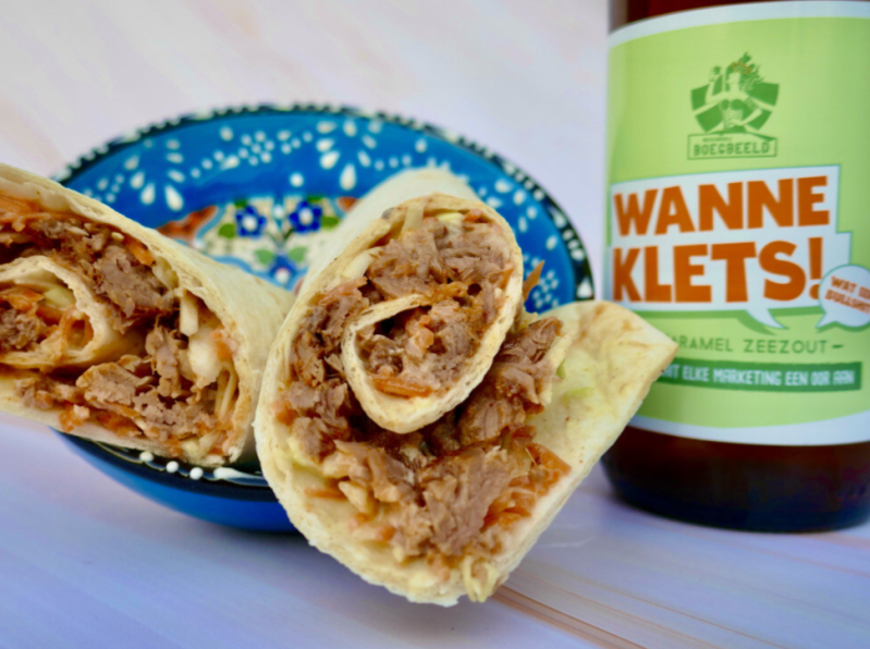 | š” TIP! Proost bij deze pulled pork wrap met het biertje 'wanne klets' van Brouwerij Boegbeeld. |